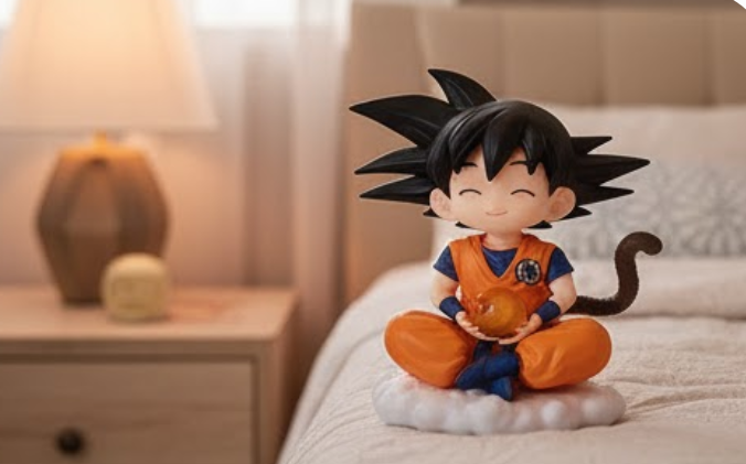 Detalles de Alta Calidad: Con un acabado detallado en pintura y esculpido, captura la esencia de Goku en una pose icónica y relajada.